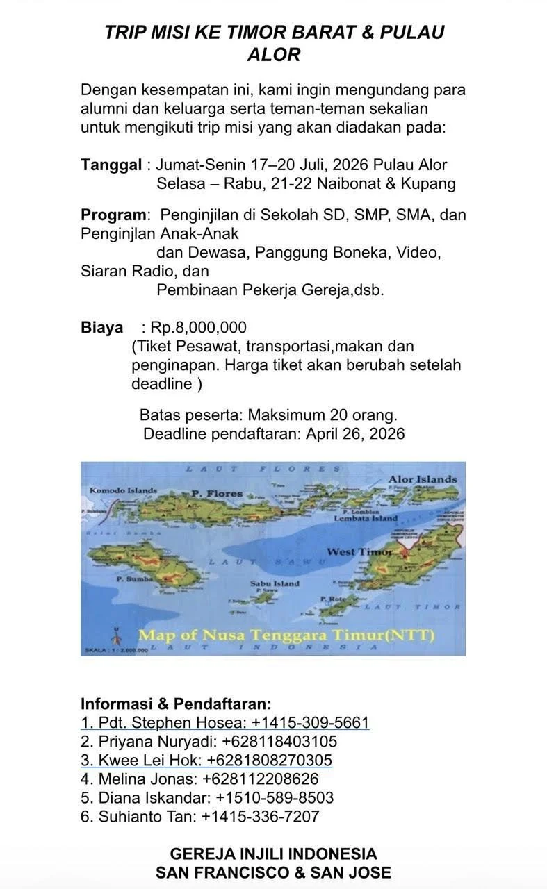 Trip Misi 2026 ke Indonesia (Timor Barat & Pulau Alor)